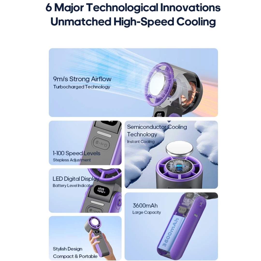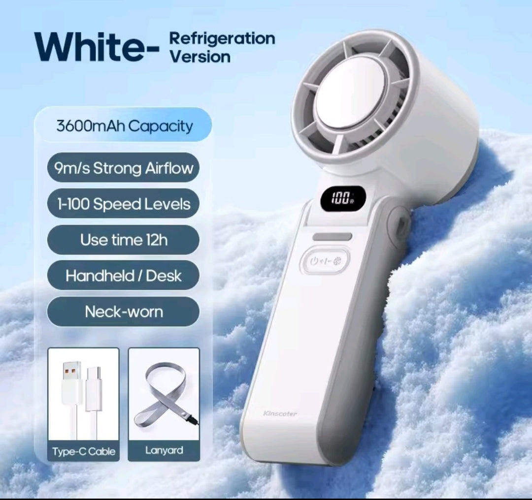 Potencia que cabe en tu mano, diseño que te distingue  con 3600mAh de energía, materiales premium y un tamaño perfecto, este ventilador no es solo un gadget... es tu nuevo imprescindible.